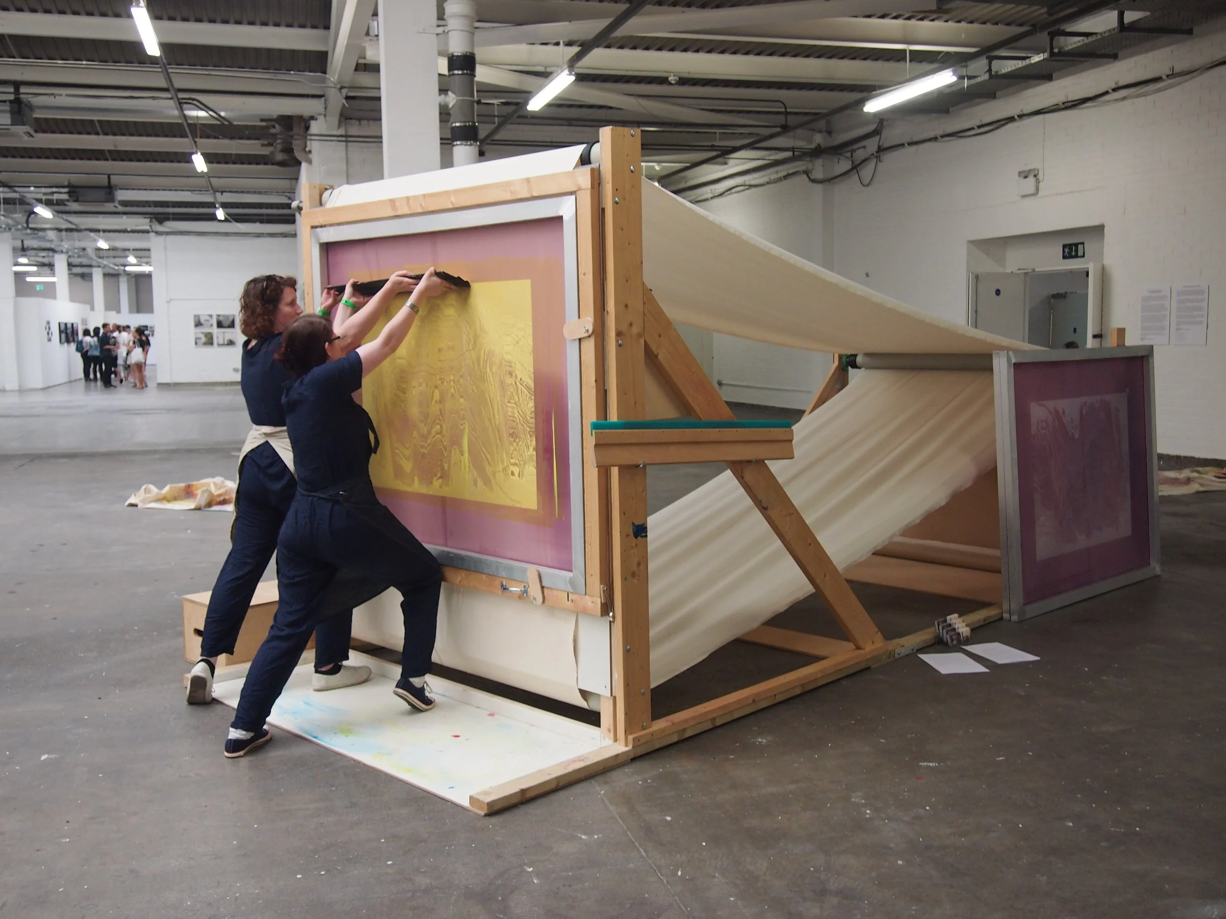 This series was a collaboration between Charlotte Richards and Elizabeth Tomos. The image is a digital scan of tree bark using a hand-held scanner. This process warps the image, resulting in a stretching and queering of the surface of the image. The image is split into its colour data and reconstructed on the screen. The black colour data was then discarded, leaving only the cyan, magenta and yellow data. The prints were then collaboratively editioned on Elizabeth Tomos’ unique print-making machine. The edition is the resulting three colour separation screenprints. Each image is completely unique due to the method of making, so these are not editioned in the traditional sense. See process below.